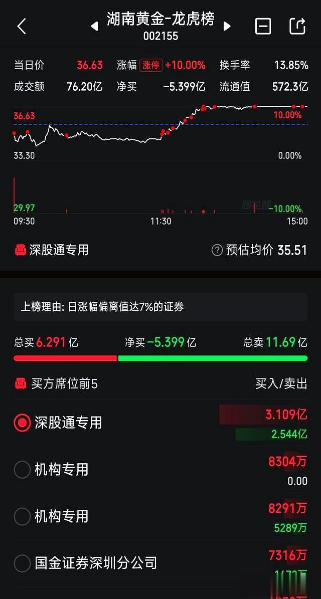 有只叫“湖南黄金”的股票,突然就跟打了鸡血一样,一天之内成交了快77个亿!